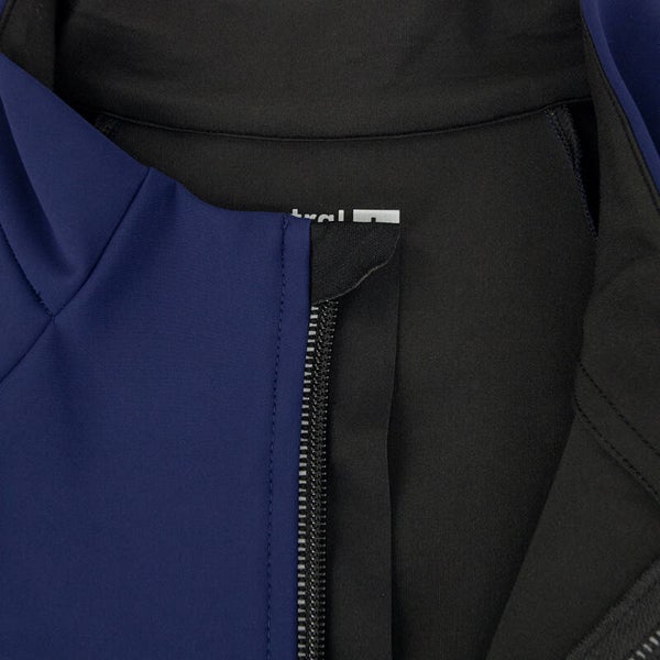 De jas heeft dezelfde stof op zowel de body als de mouwen, maar aan de voorkant en het bovenste deel van de mouwen is de stof gelamineerd met een winddicht en ademend membraan dat de koude wind buiten houdt. Het rugpand en de stof onder de armen zijn membraanvrij en dus 100% ademend, wat zorgt voor een optimale temperatuurregulatie en comfort.